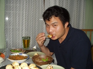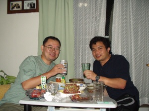 JACKさんから電話があり一緒に買い物に行きご飯を食べました。 タイの街中ではなかなか見かけない雰囲気のタイ人なのです。 やはり国の代表で研修に来ているからなのか? きんぴらごぼうは結構好評でよかった。 刺身を大量のわさびで食べるのには驚いたな〜(^。^) 今度はタイ語を真剣におしえてもらおう!