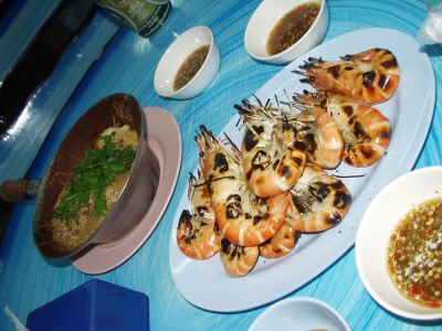 手前の辛いたれと食べます。