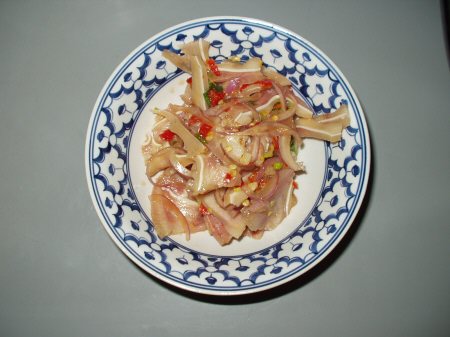 豚の耳のサラダ スパイシーでお酒のつまみに 合いそうです なかなか日本のタイ料理屋さんでは 見かけないと思います。